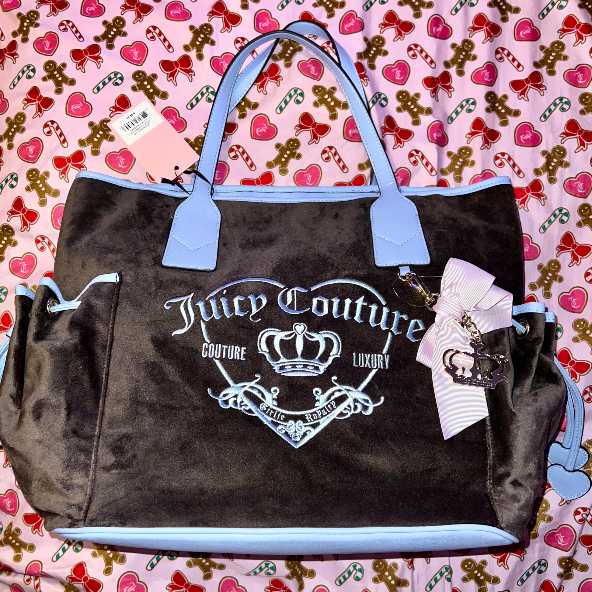 New Blue Brown Juicy Couture Tote Bag Purse Velour Y2K Vintage Style
