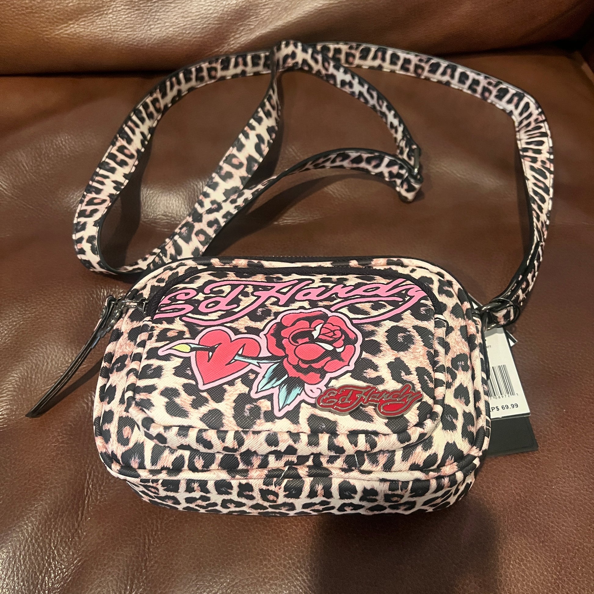 New Ed Hardy Crossbody Purse Bag Tattoo Y2K Heart Rose Leopard Cheetah