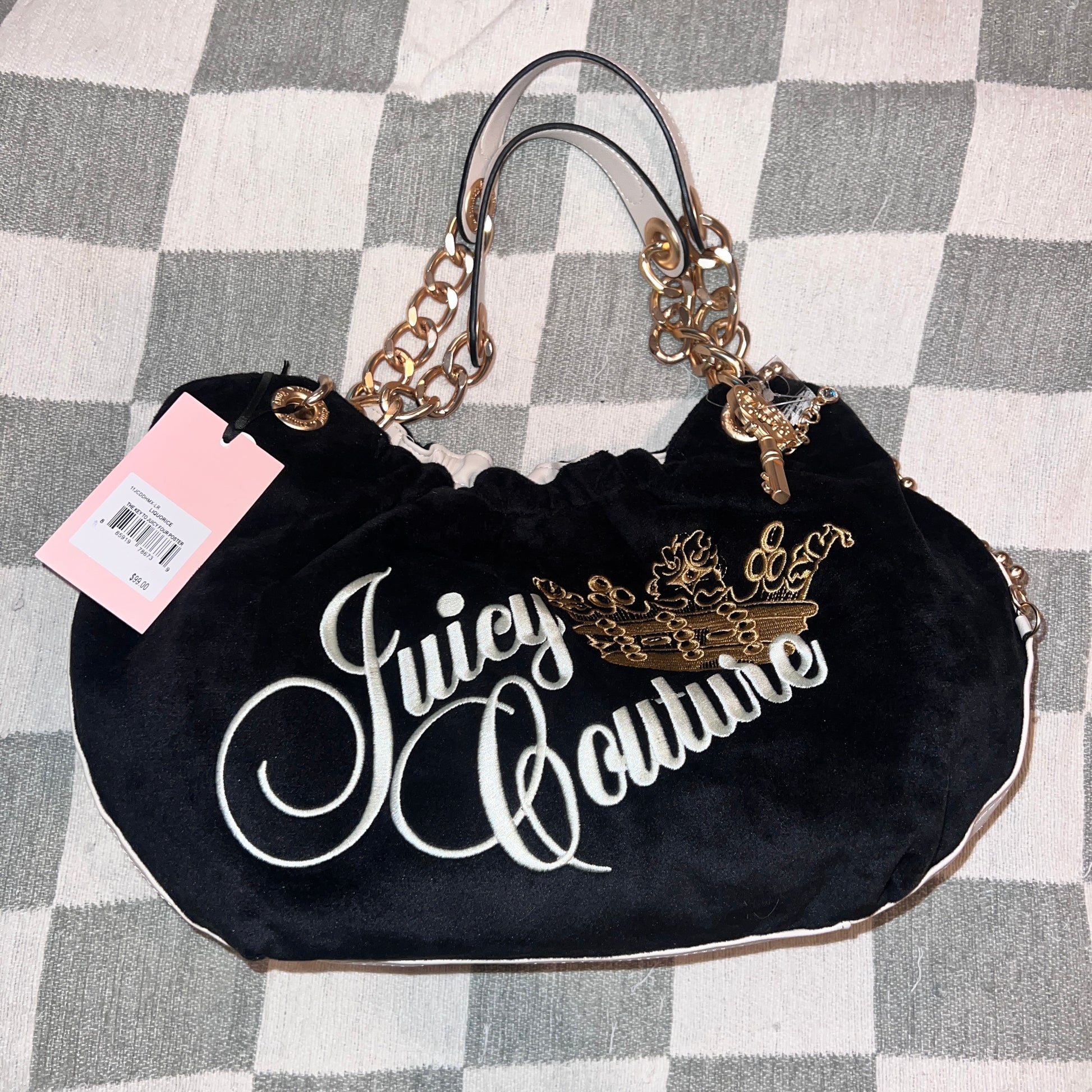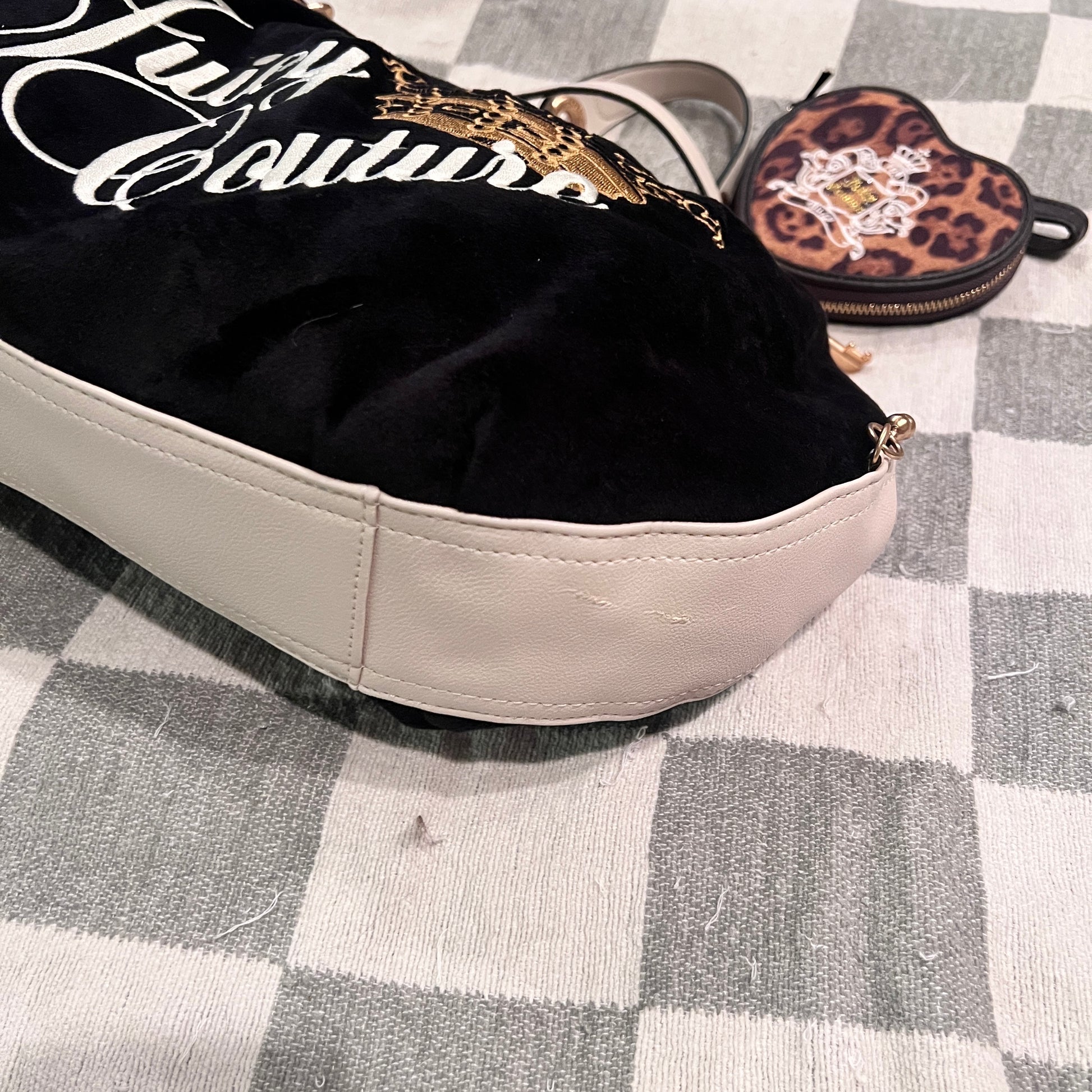 New Juicy Couture Black Satchel Bag + Cheetah Pouch Velour Vintage Style Purse