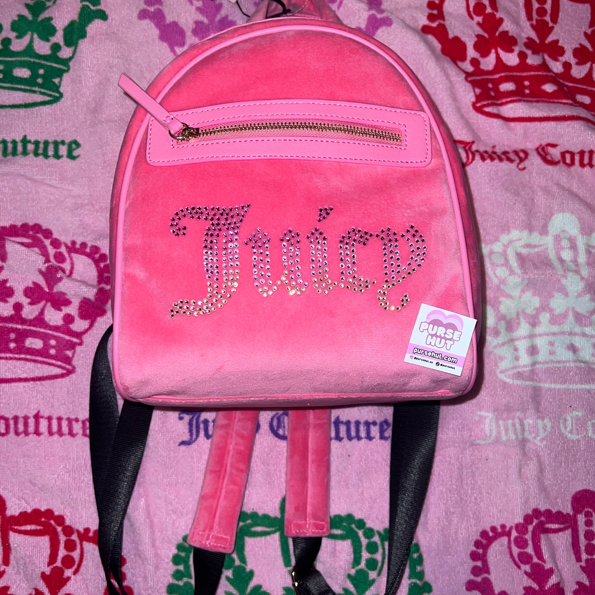 New Pink Juicy Couture Backpack + Bag Charm NWT Purse Bag Velvet MSRP $99
