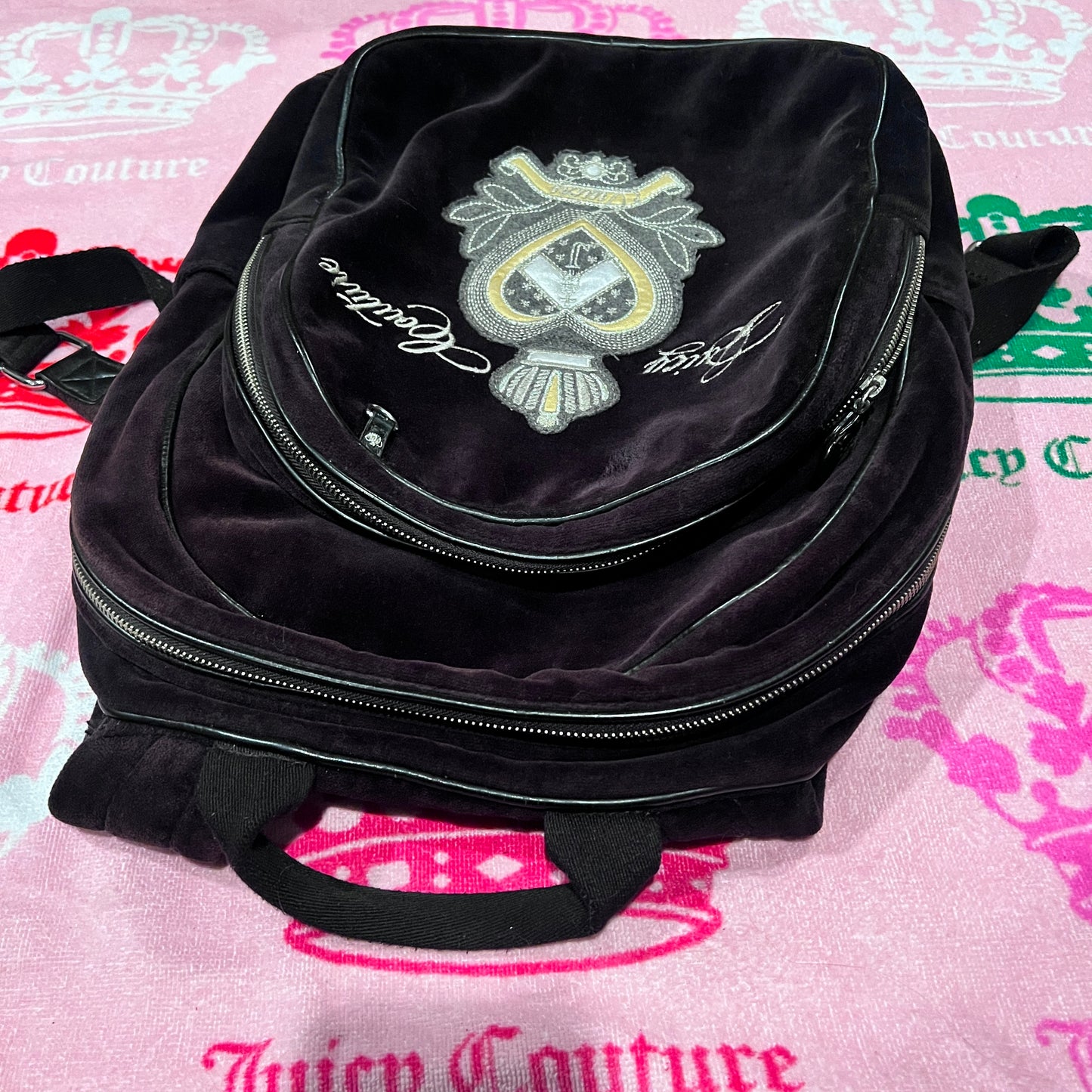 Vintage Black Juicy Couture Backpack Purse Bag Velour Y2K Large