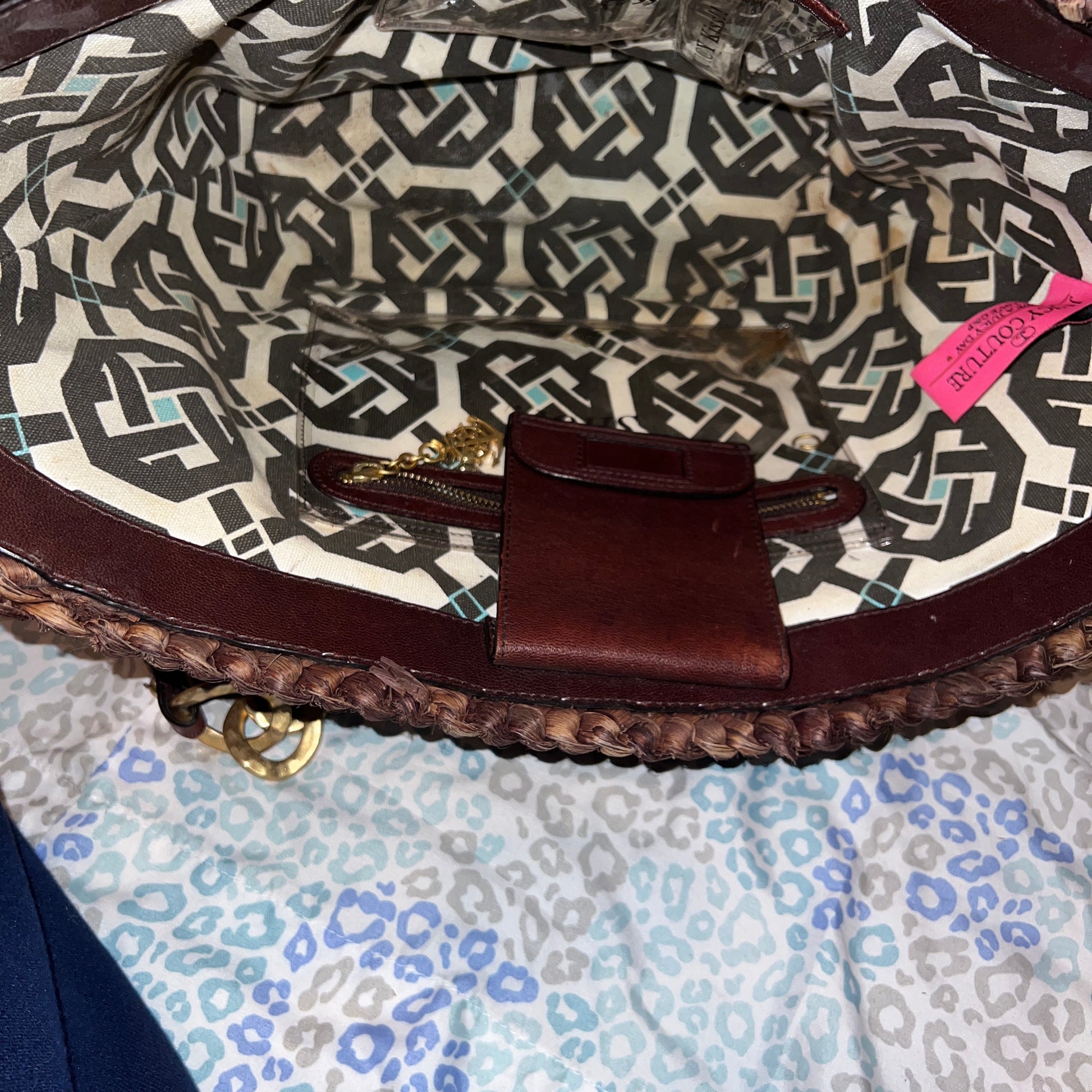 Vintage Brown Juicy Couture Tote Bag Purse Y2K Handbag XL Size Woven Wicker